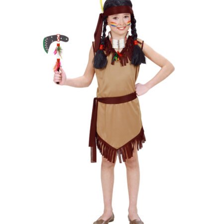 Παιδική Αποκριάτικη Στολή Ινδιάνα - Μπεζ. Περιλαμβάνει το φόρεμα, τη ζώνη και την κορδέλα.