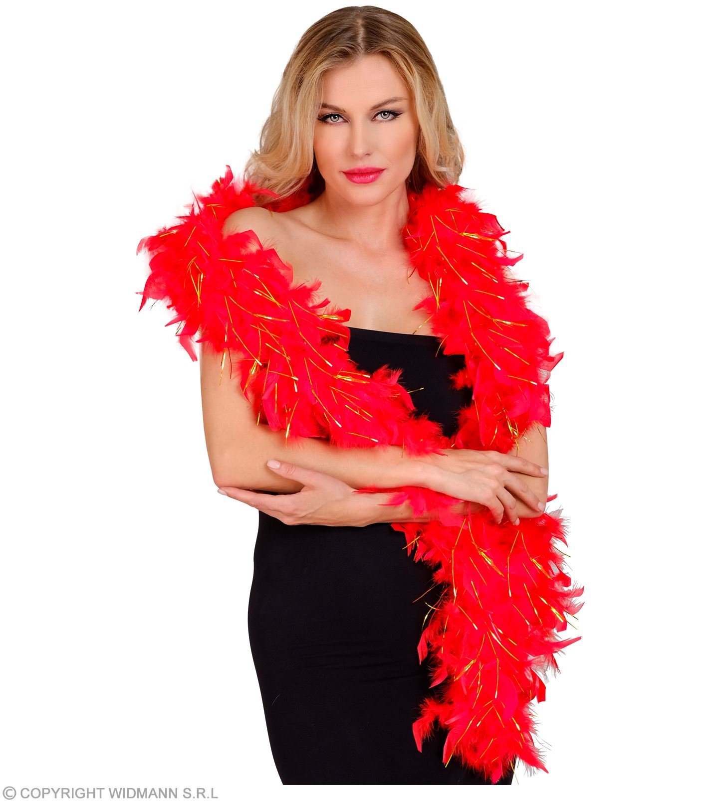 Κόκκινο Φτερό/Boa/Πούπουλο με χρυσό tinsel . Μήκος : 1,80 m