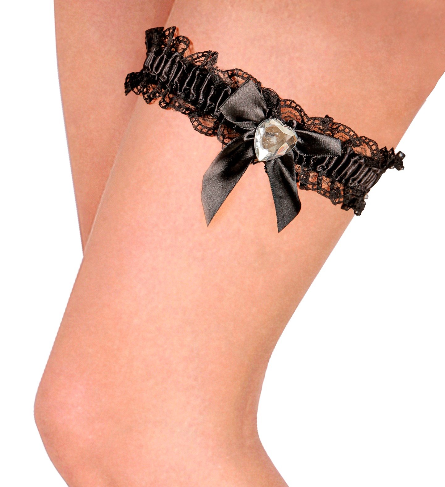 “BLACK GARTER WITH BOW & DIAMANTE HEART”