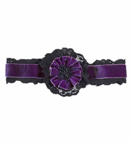 Μωβ Velvet Τσόκερ με Δαντελένιο Λουλούδι