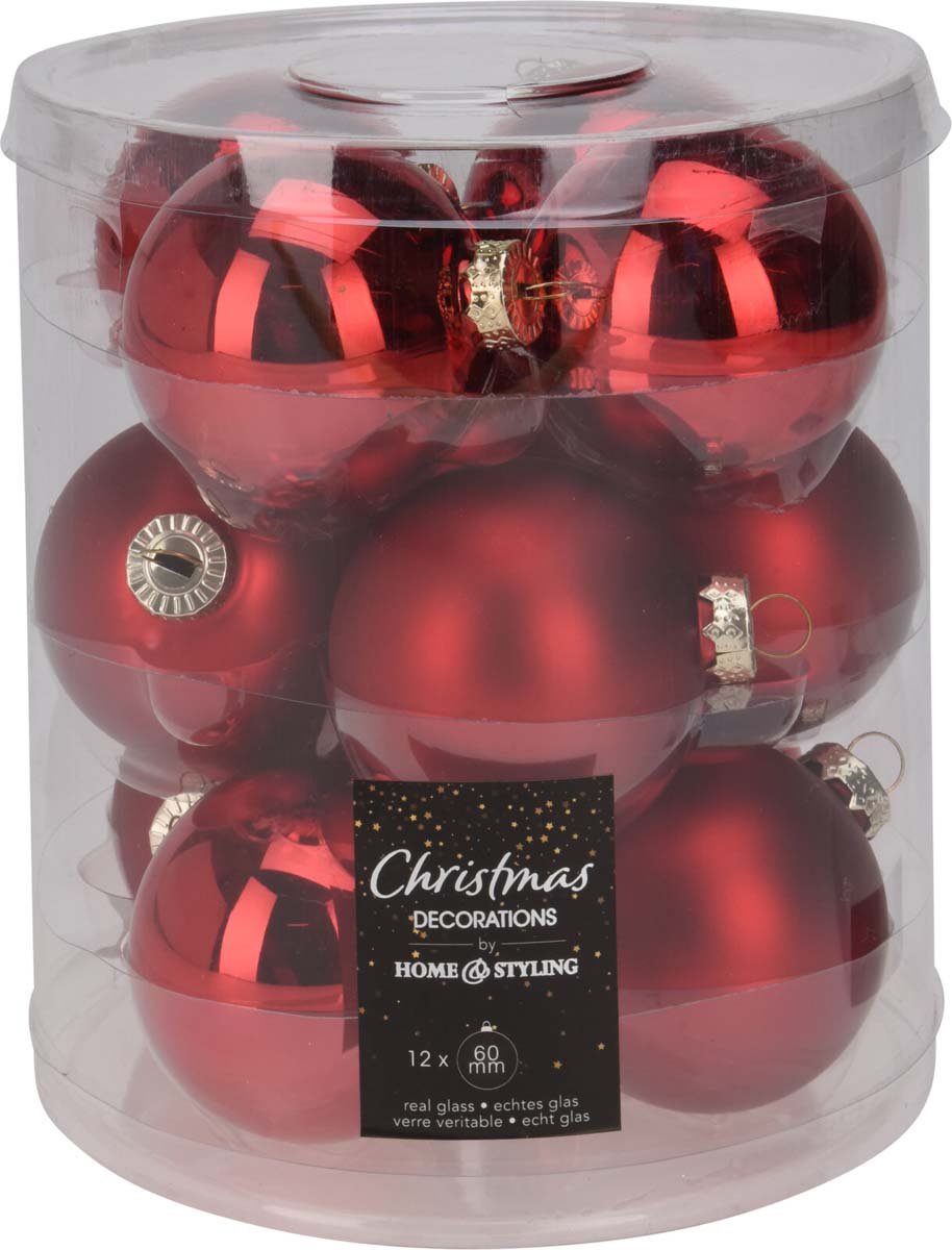Σετ 12 Μπάλες Γυάλινες Κόκκινες 6cm
