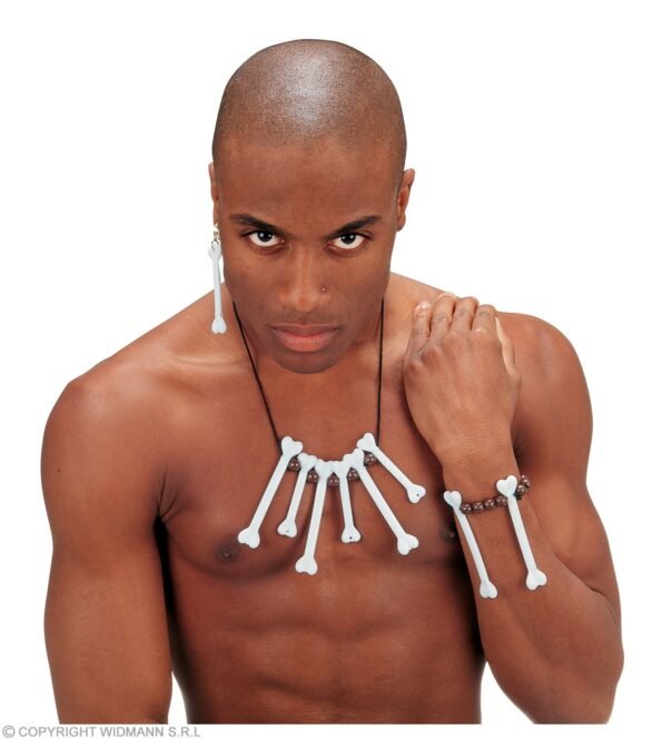 Σετ Κοσμήματα Με Κόκκαλα (κολιέ, βραχιόλι, σκουλαρίκια) . Κατάλληλα για άνθρωπο των σπηλαίων, Αφρικανούς και Ινδιάνους.