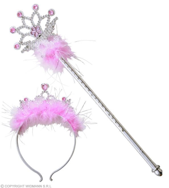 Σετ Τιάρα και Σκήπτρο – Ροζ με Πούπουλο