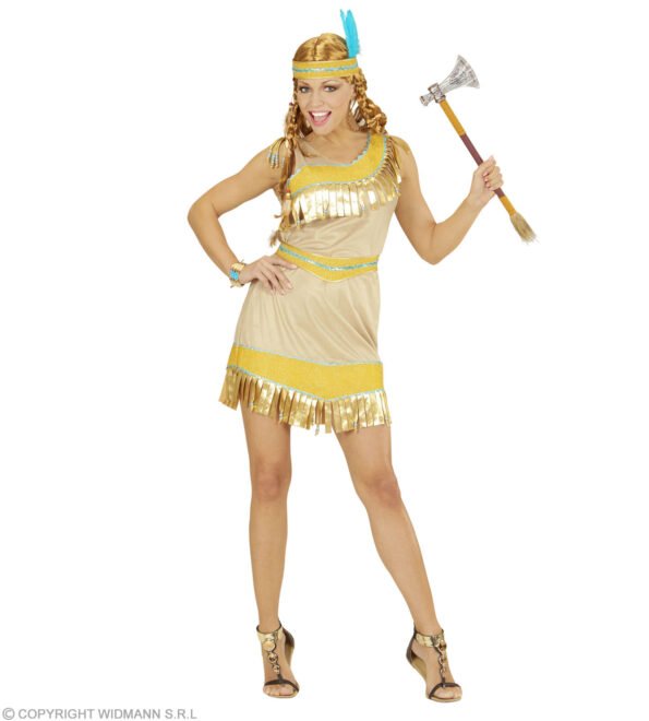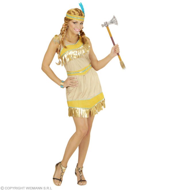 Αποκριάτικη Στολή Ινδιάνα - Με χρυσές λεπτομέρειες. Περιλαμβάνει το φόρεμα, τη ζώνη και την κορδέλα κεφαλής.