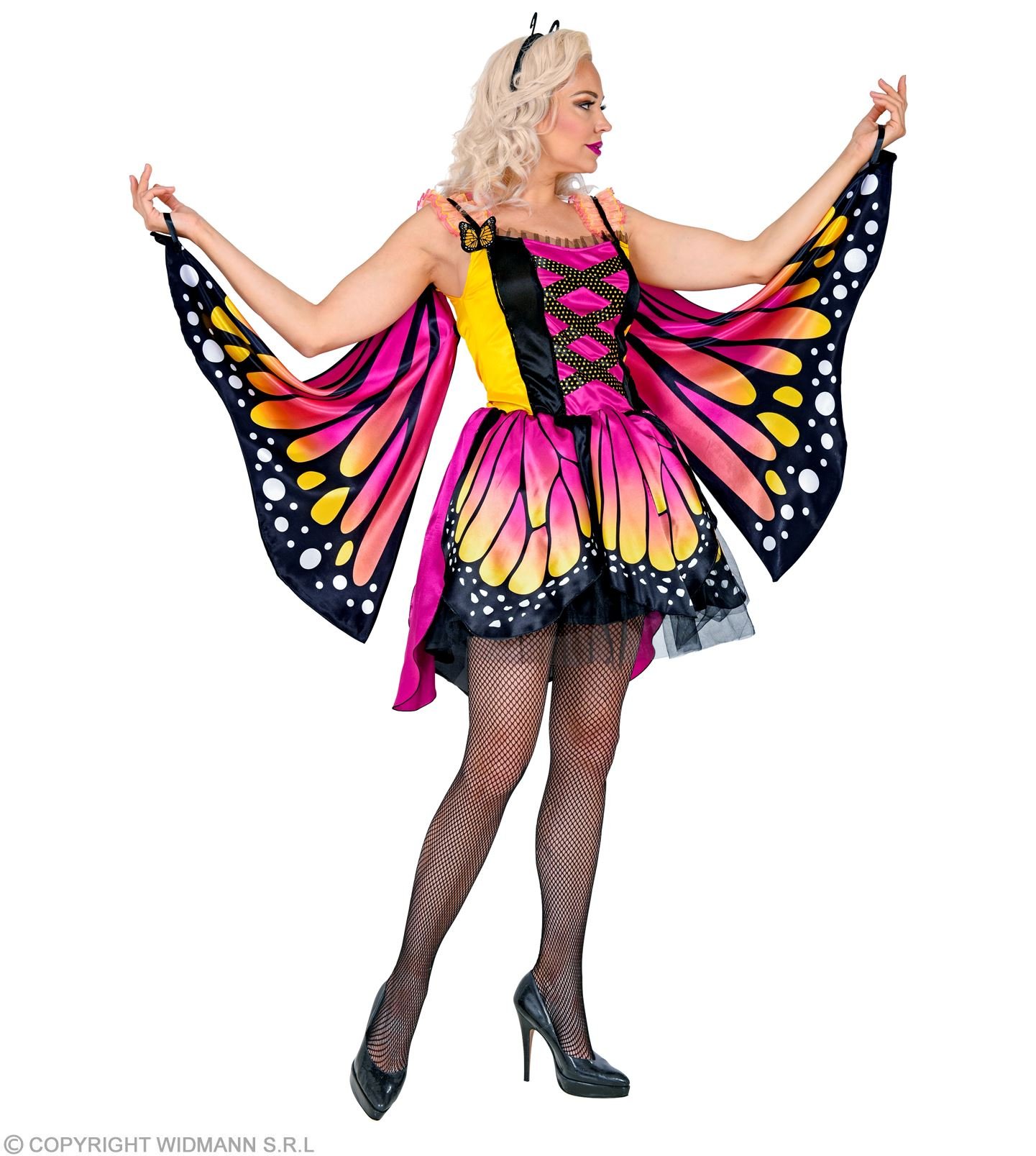 Αποκριάτικη Στολή Πεταλούδα Ροζ / Πορτοκαλί. Περιλαμβάνει το φόρεμα με την φούστα tutu, τα φτερά και τις κεραίες.