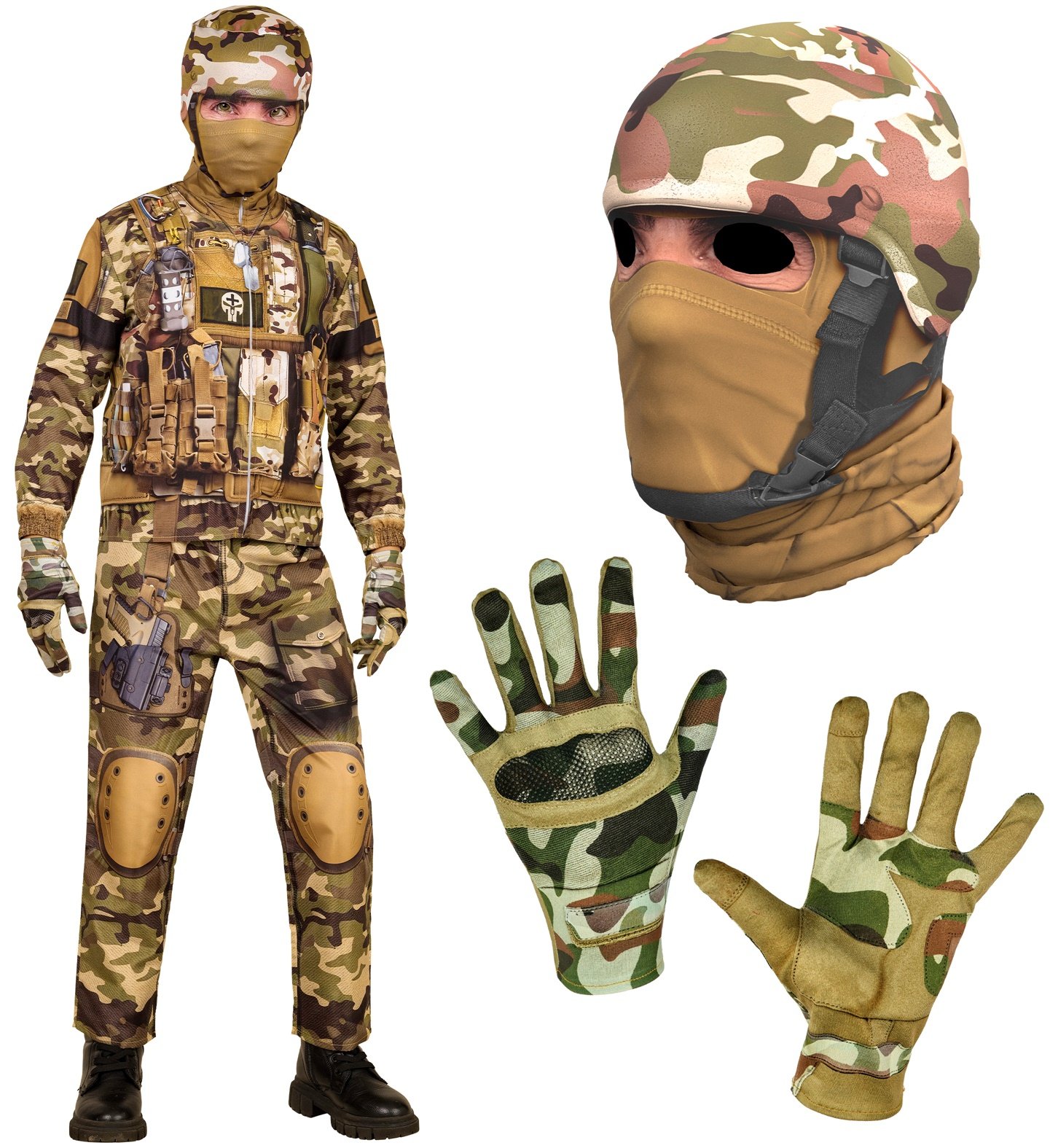 Αποκριάτικη Στολή Στρατιώτης -Fast Costume. Περιλαμβάνει τη μπλούζα, το παντελόνι, τα γάντια και τη μάσκα.