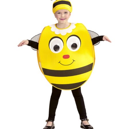 Παιδική Αποκριάτικη Στολή Μελισσάκι με Μεγάλα Μάτια . Περιλαμβάνει το μεγάλο μπλουζάκι και το καπέλο. Καλύπτει νούμερο από 2 έως 4 και μέγιστο ύψος 110 εκατοστά.