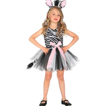 Παιδική Αποκριάτικη Στολή Ζέβρα. Περιλαμβάνει το φόρεμα με φούστα tutu και τη στέκα με τα αυτάκια.